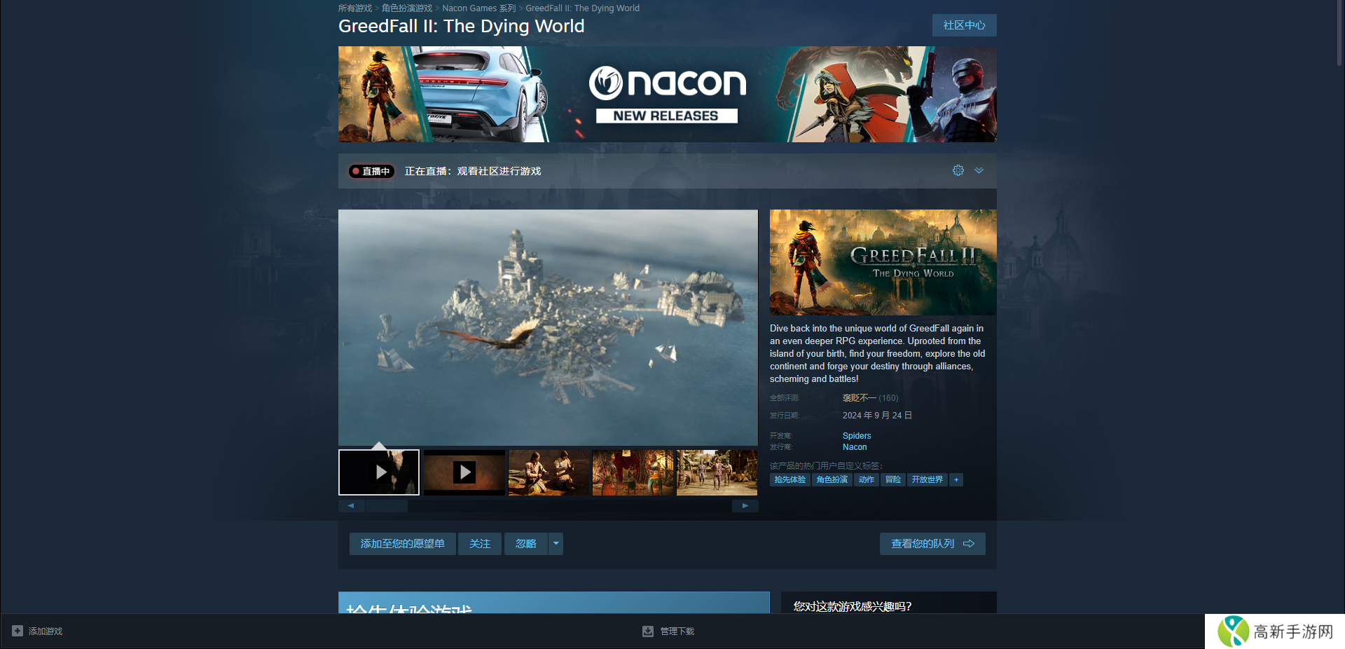 Steam平台购买链接:https://store.steampowered.com/app/1997660/GreedFall_II_The_Dying_World/。