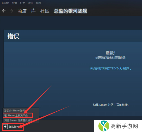3.如果是steam平台的激活码,首先打开steam平台,然后点击左下角的添加游戏选项,再点击“在steam上激活产品”