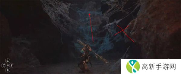 4、跳下去后你会看到许多蜘蛛网,往前走,一直走到分岔路口,然后往左边走。