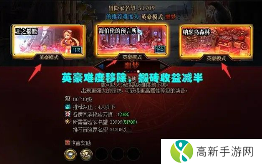 (2)所有基础白图的英豪模式全部删除,这也就意味着,如“柯涅恩山”“海博伦”这样的副本,最高就只能打普通级的噩梦难度,收益直接减半,也就是说,常规的基础白图已经不具备搬砖环境了。