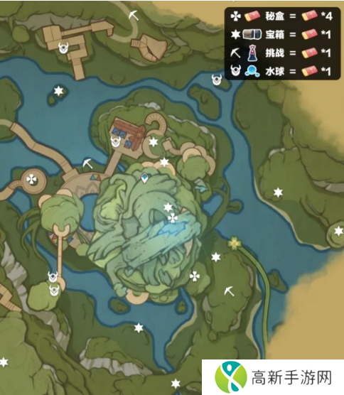 四叶草=密盒(礼券*4)、六芒星=宝箱(礼券*1)、稿子=挑战(礼券*1)、敌人=水泡(礼券*1)