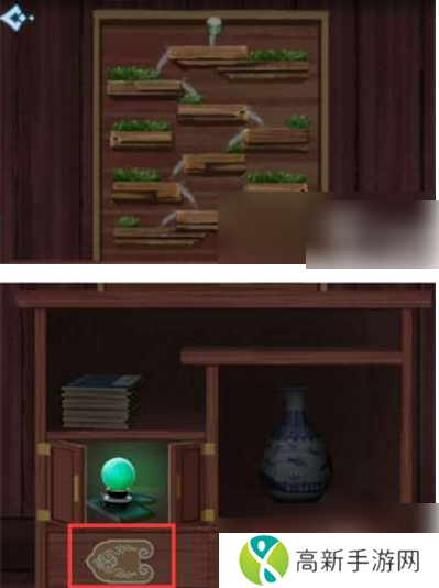 3、之后我们观测水的流向可以得出下方柜子的机关顺序为:左右右左左右左。