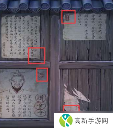 4、观测告示板上盖章的位置我们推断出箱子的密码从左至右依次是:右下、左上、右上、左下。