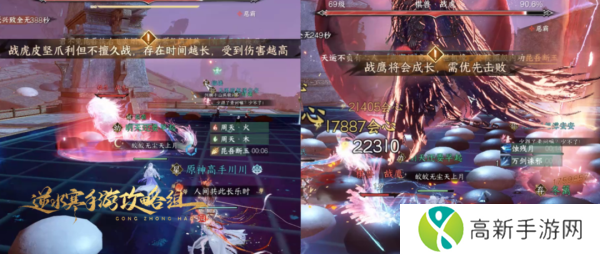 应对方式:黑棋攻击保持移动躲避;红光处召唤战虎,越晚打越脆,所以最后击杀。在金光处击杀战虎可直接复原白子,否则白子会碎成四枚需要搬运碎片复原;落子机制为第一优先级,当屏幕出现中盘掠地时会召唤第二优先级的1岁战鹰,需要集火秒杀。