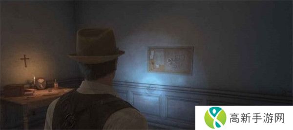 离开地下室后,进入开着门的房间从公告板上拾取广场钥匙。