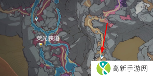 1、首先需要打开地图,前往层岩深渊地下矿区的【荧光狭道】下图传送点。