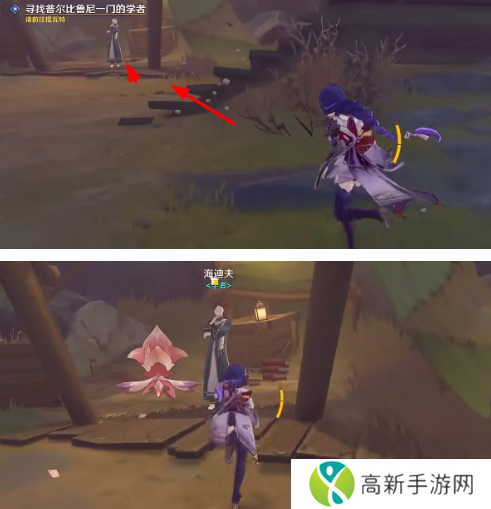 2、到达目的地以后,朝着下图位置移动,可以看到不远处的NPC【海迪夫】。