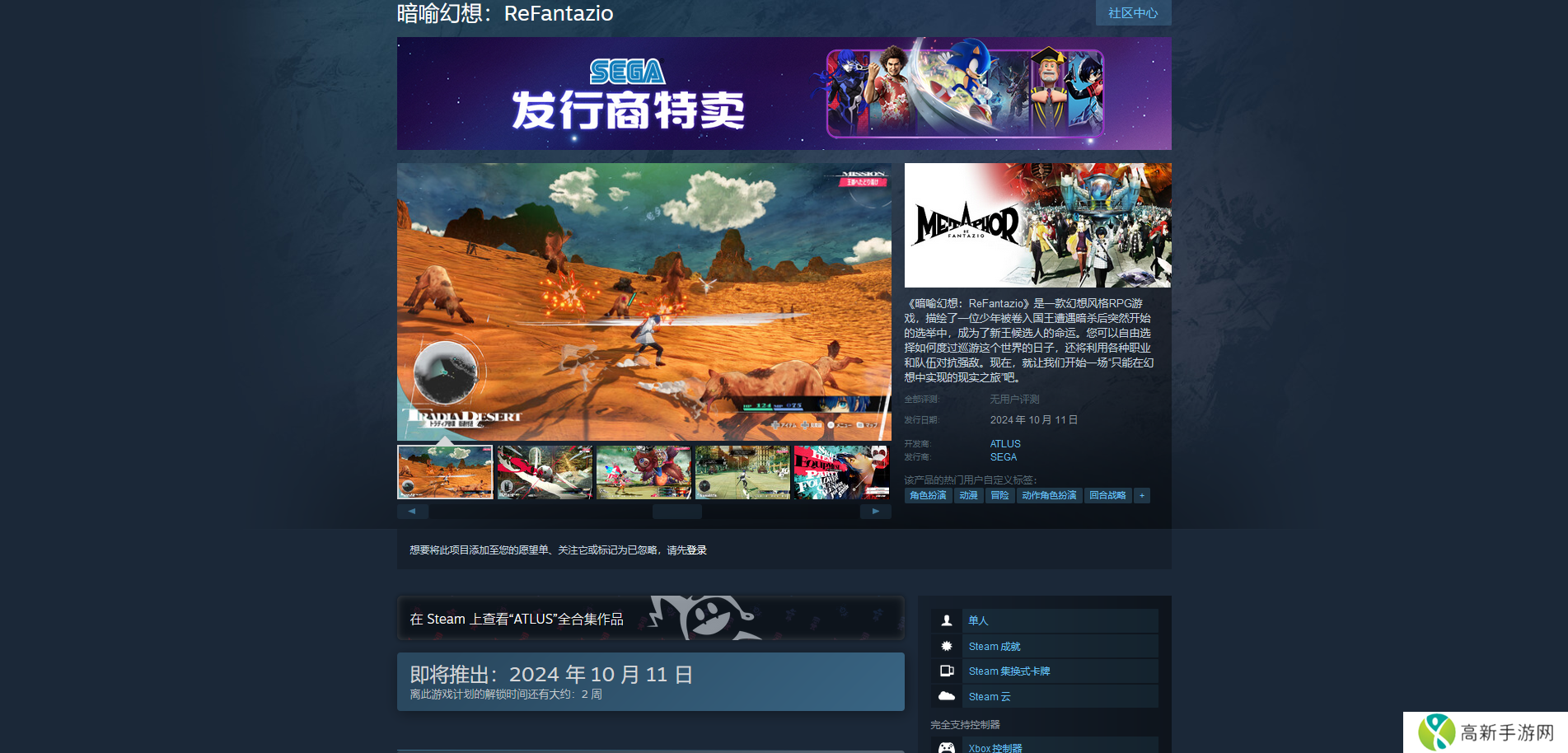 《暗喻幻想:ReFantazio》Steam版的上线时间为2024 年 10 月 11 日上午10点,预载时间大概是前一天,到时候注意一下即可。