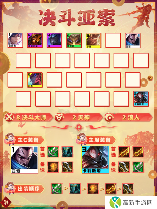 这就是金铲铲之战决斗亚索阵容推荐攻略,希望对大家有所帮助,快去试试吧!