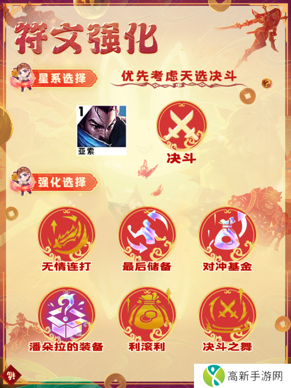 天选决斗亚索开局有了,基本就能够直接定阵容了。在3、4阶段是统治级别的地位。