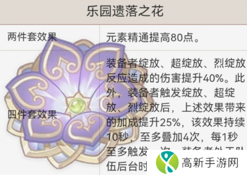 【站场盾C】如果队伍里没有其他草戴草套,可自己戴,专门「辅助妮露」或者「其他原绽流派」的玩法。如果是「烈绽」或「超绽」这种队伍里非自己触发的也可以纯堆生命当一个站场的挂草盾辅。