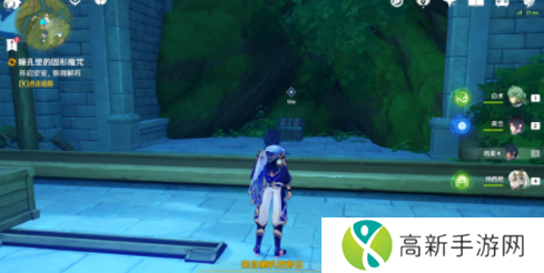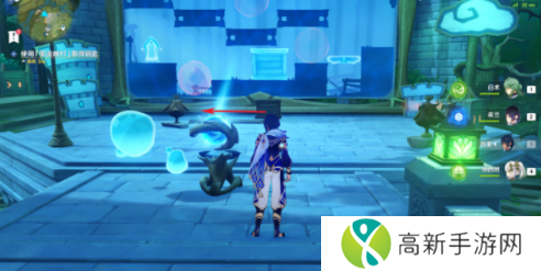1、首先我们需要完成地图开图的前置4个任务之后,我们来到寄想者剧场,对应下图标记单位位置,我们可以看到一个小水珠,我们需要进行对话;
