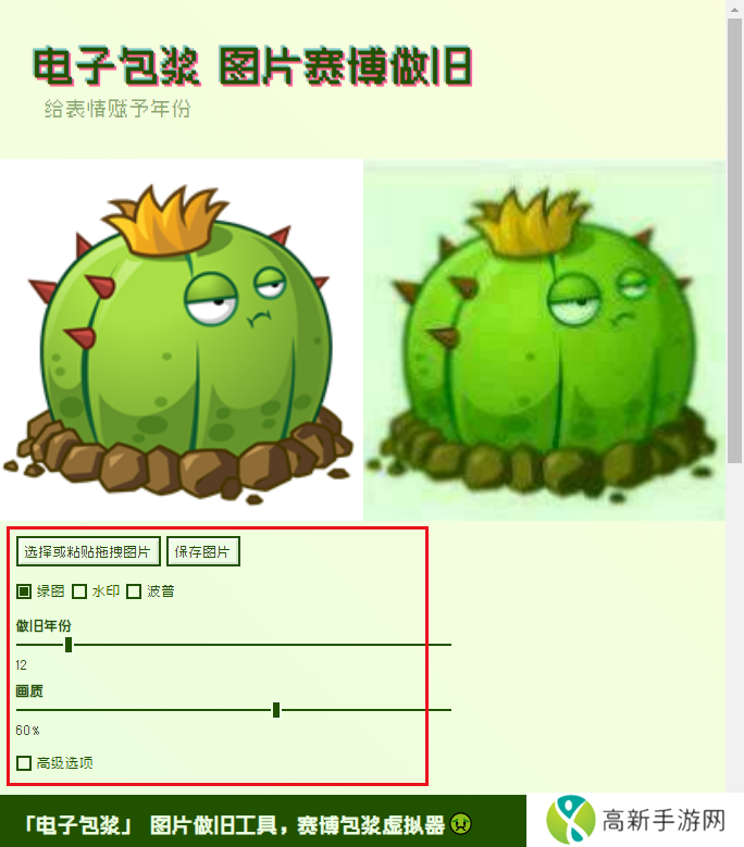 电子包浆生成器是什么?电子包浆生成器是一个可以将高清图片一键制作成怀旧渣画质的工具,通过这个工具做的包浆图片很适合做表情包,选择一张适合的图片,变成包浆画质,再配上文字,做表情包简直完美!有了这个工具