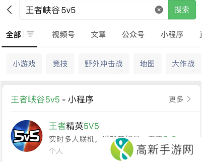 1、进入微信,在微信的搜索框内搜索【王者精英5v5】,进入小程序体验就可以了。