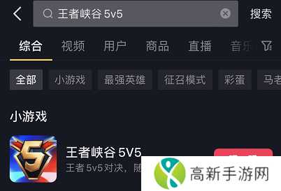 1、在抖音里面搜索【王者峡谷5v5】,即可看到小程序,进入即可体验;