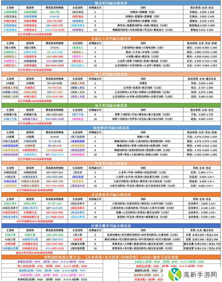 高级宠物资质计算方法:(生命值+攻击资质+防御资质)*1000=最终进化资质。