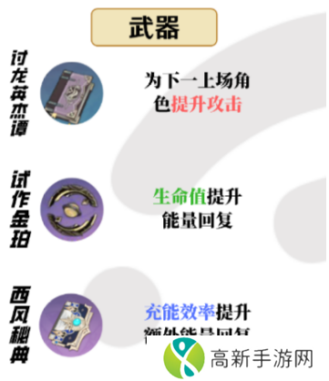 1、武器推荐:讨龙英杰谭 > 试作金珀 > 西风秘典