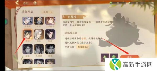 3、接着在进化列表,找到苏轼且满足进化要求,点击右下角的进化。