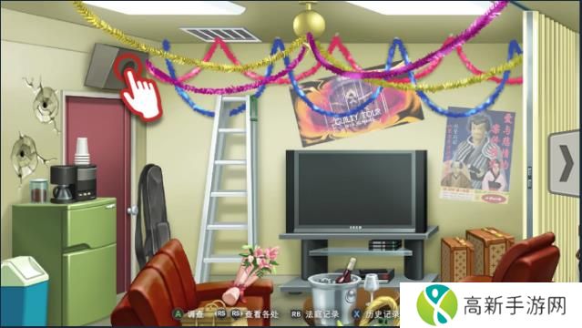 在拉米诺雅的休息室内,调查左边门上的音响。