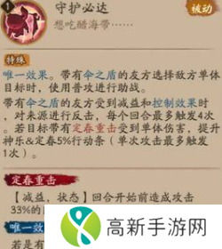 同时拥有伞之盾的友方受到减益和控制的时候,会反击敌方,每个回合最多触发4次,迦楼罗看了都要流泪,怎么你和银时都会这种条件反击。