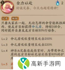 被动是当拥有伞之盾的友方选择敌方单体目标时候,会使用普攻协战。这点和食灵的被动食灵自身协战是类似的。