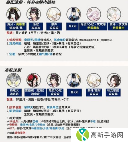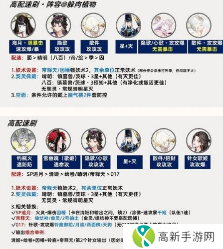 4、阴阳师百鬼逸闻协行阵容具体如下,有中低高配阵容,大家可以参考。