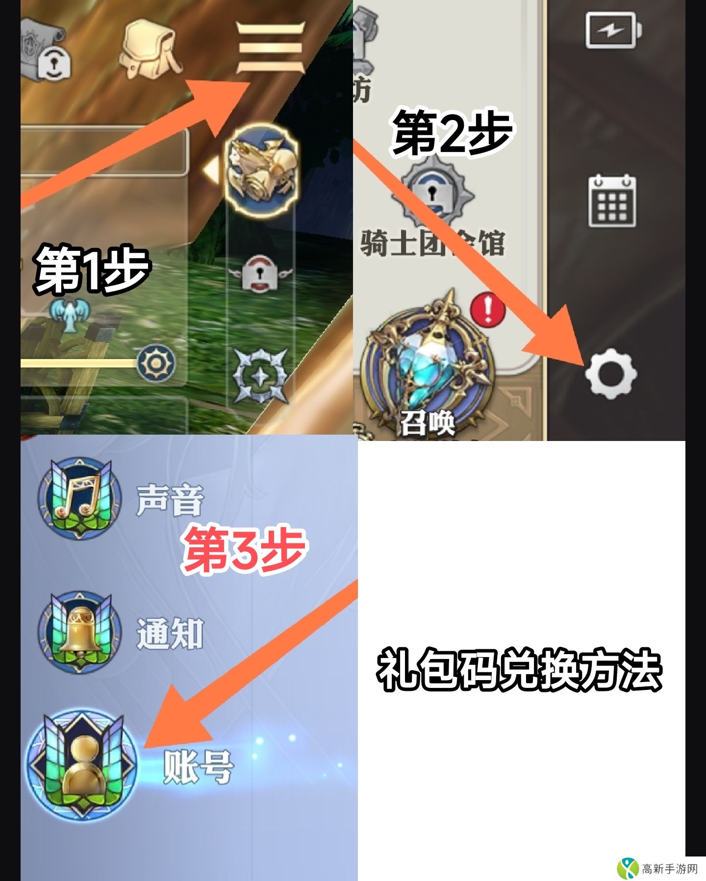 礼包兑换方式:游戏内点击右上角三条横线选项,再点击迟坤进入设置,接着点击账号,找到兑换码选项,输入兑换码即可。