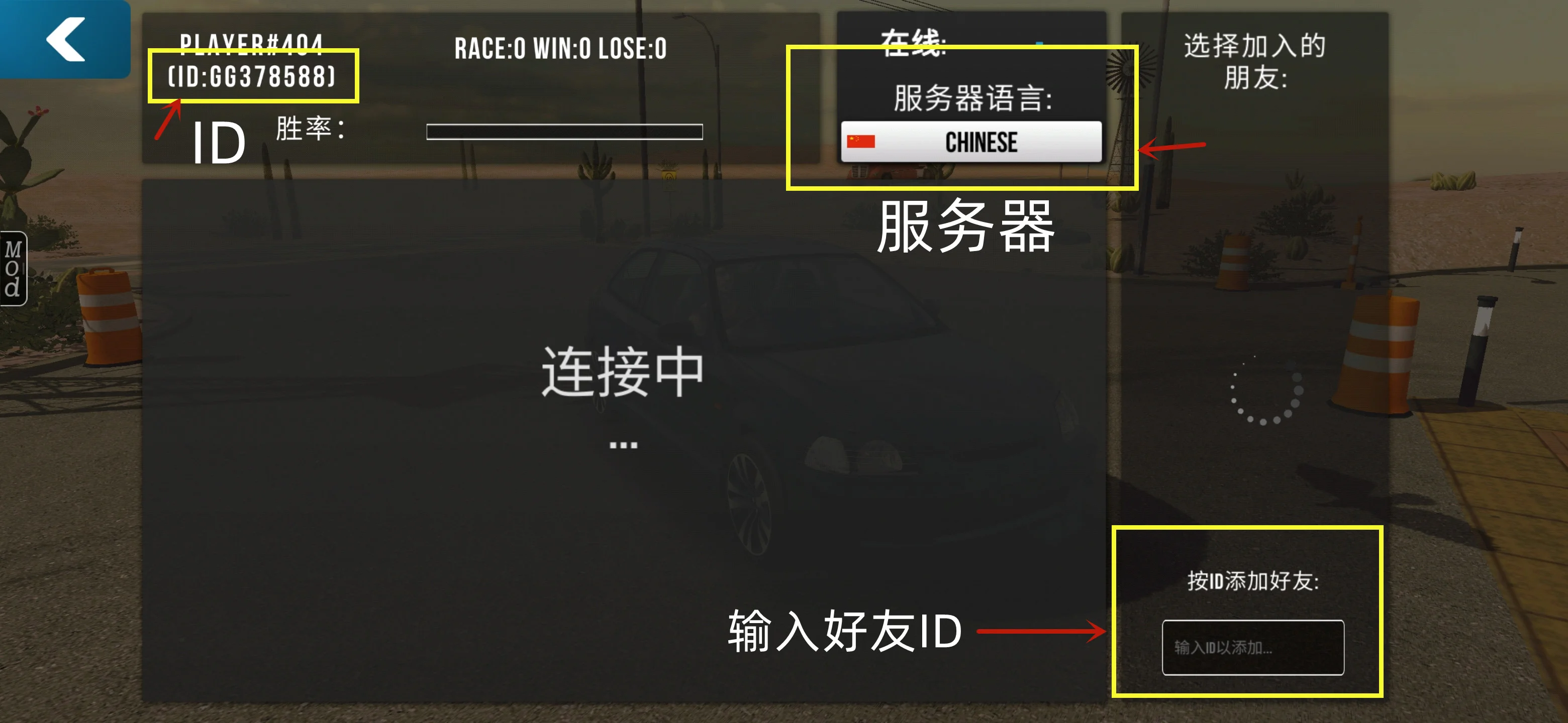 在同一界面下,待好友列表加载完毕,输入好友左上角的ID,静待入房。好友就位后,轻点其名,即刻启程,共赴赛道,一决高下!