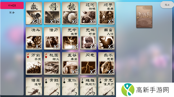 游戏牌:简称“牌”,游戏中用来游玩的牌,分为基本牌、锦囊牌、装备牌。