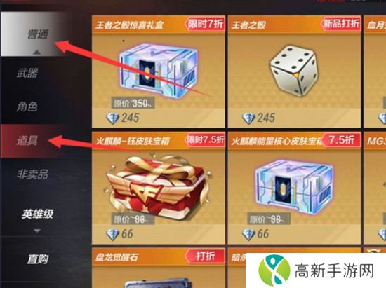 2.点击进入商城界面后,我们在左边点击普通,然后下拉框出现几个选项点击道具。