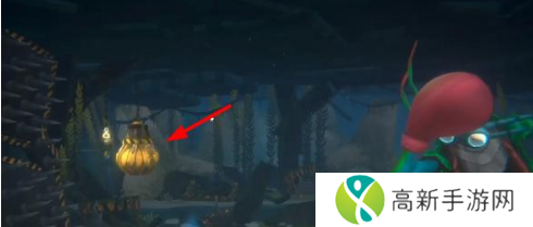 1、我们首先来到螳螂虾的位置,然后游到顶上躲避螳螂虾的攻击。