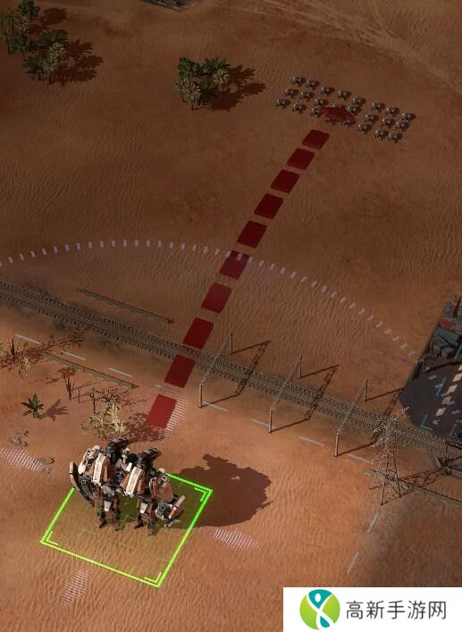 单位有两个攻击的权重,一个是距离,一个是转向时间。单位会根据距离和转向时间来计算他最先能打到哪个单位,这就是他的攻击对象。点击单位显示的红色箭头即单位的进攻方向,周围一圈白线则是它的攻击范围。