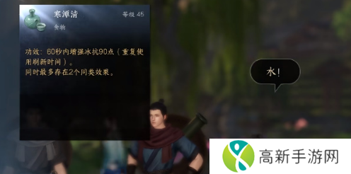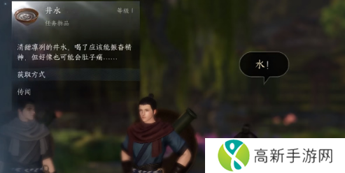 2、服用后我们会再次进入剧情对话,这次需要的是水,我们直接给他寒潭请(是不可以进行解渴的所以我们需要去打水);