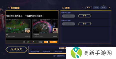 玩家点击上方的地址就可以进入DNF格斗大赛官网,往下拉可以看到左侧有一个【立即报名】的按钮,点击之后登录绑定自己的账号、大区,选择要报名的比赛就可以了。