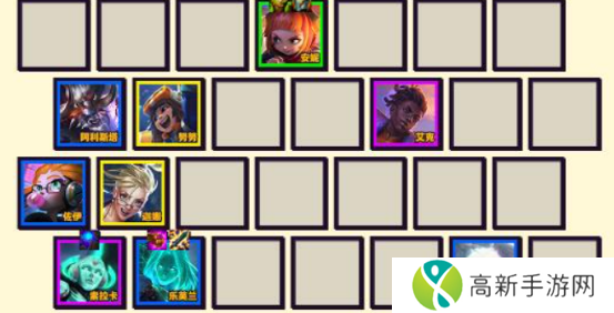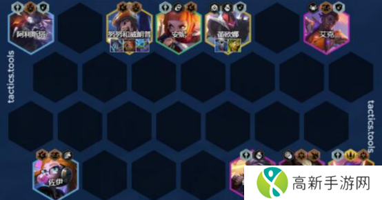 1、阵容组成:安妮、佐伊、乐芙兰、阿利斯塔、娑娜、艾克、索拉卡、迪迦、努努