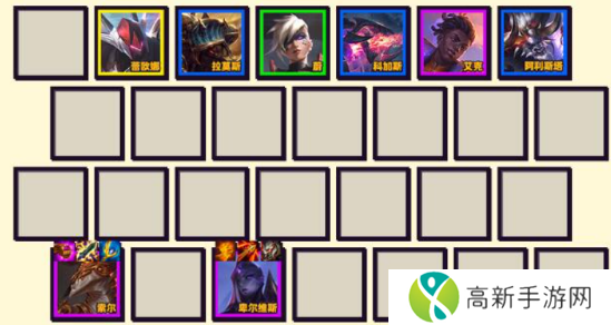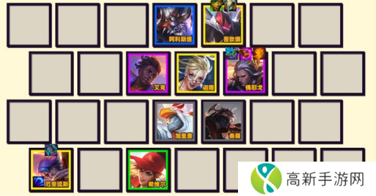 1、阵容构成:加里奥+泰隆+阿利斯塔+希维尔+艾克+佛耶戈+蕾欧娜+迦娜+厄斐琉斯
