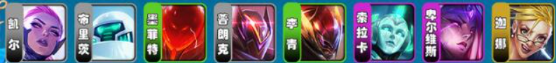 1、阵容构成:亚索+艾克+赫卡里姆+瑟庄妮+蔚+劫+薇恩+尼菈+佐伊