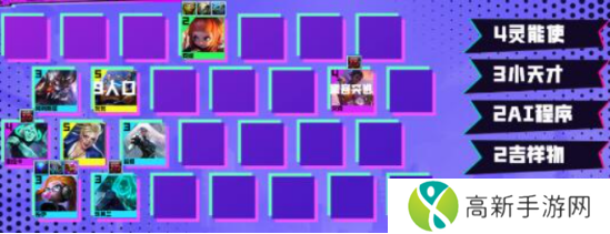 2、羁绊:4灵能+3小天才+2AI+2吉祥+2淘气包+2爱心使者+2福牛+2秘术+2黑客+1平民