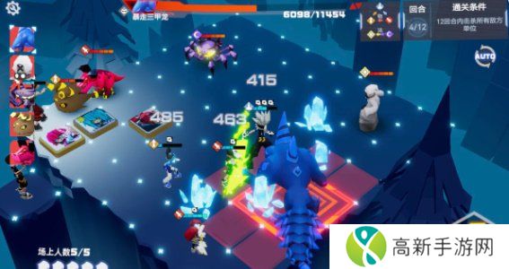 4、第四回合:复活一个肉一点的炮灰把左边怪物拉回来,强化残血,继续集火,雷狮有小技能就用,炮灰可以提供费用。