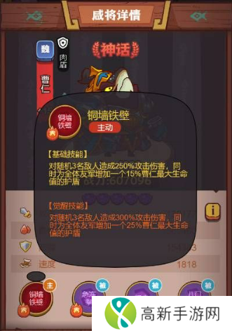 姜维:神话品质,不但有较高的伤害,还善于把自身属性进行全面提升,使自己越战越勇。