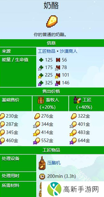 2、每个食谱的制作还有回血的效果都是不一样的,小编比较推荐大家制作奶酪和山羊奶酪,这两个制作起来比较简单并且回血也是比较多的。