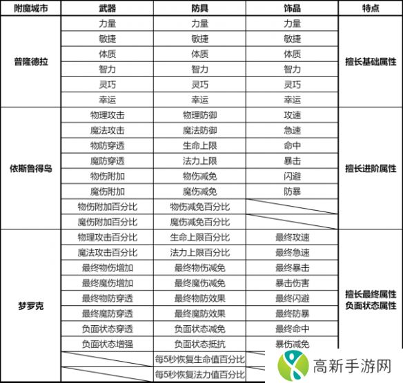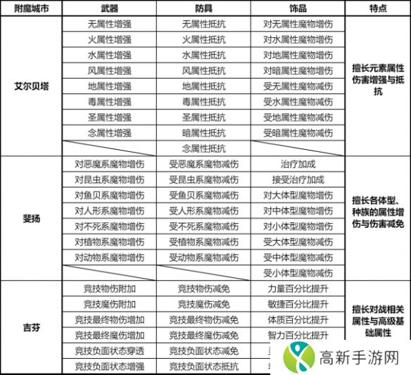 以下为各城市各部位附魔详情:
