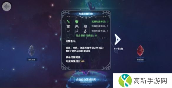 各部位装备附魔均达到一定等级后,即可解锁“附魔觉醒”属性。点击主页面【觉醒】页面即可查看。