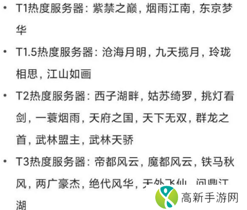 T1.5热度的话,就推荐九天揽月、江山如画、沧海月明、玲珑相思这几个服务器。