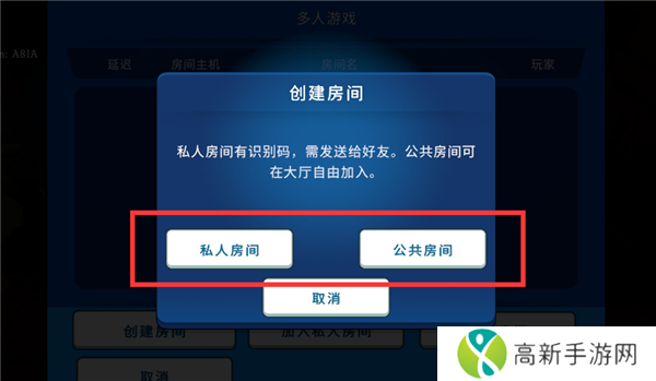 4、创建房间:选择是创建私人房间还是公共房间,满足您的联机需求。