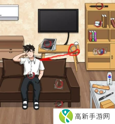 2、左边的柜子下方的剪刀拿起来在矿泉水上划动一下,就可以得到一瓶透明矿泉水;