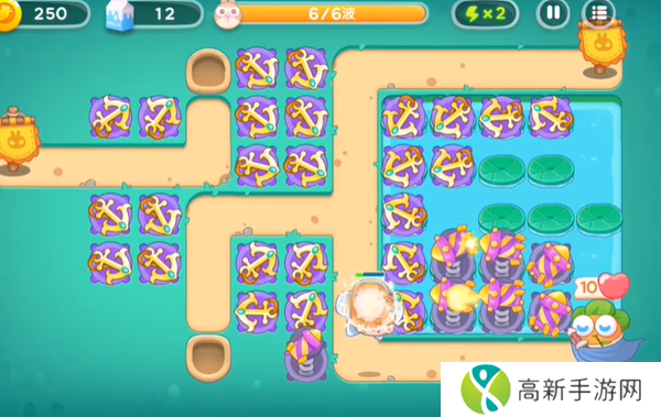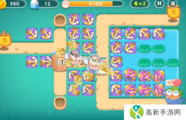 1、在游戏开局的时候,如果拥有船锚的话,游戏过程就会比较轻松。此时,直接在怪物出口的正对面放置两个已经达到满级状态的船锚。满级船锚的攻击力和防御能力相对较强,能够在开局时对怪物起到有效的阻拦作用。