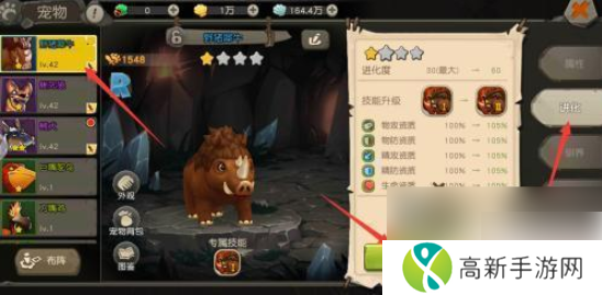 5.选择需要成为坐骑的宠物,然后点击右边的选项【进化】。
