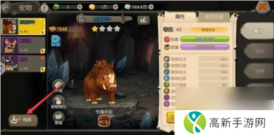 2.然后在宠物设置界面选择左下角的选项【布阵】。