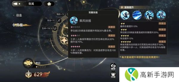 3.3星和绝1的天赋让李白的前2次灵技有超高的伤害和暴击加成,而核心机制【十步一人】的相关天赋可以让李白在施放完灵技后再次对敌方打出高额的追加攻击,从而快速使敌方后排减员。